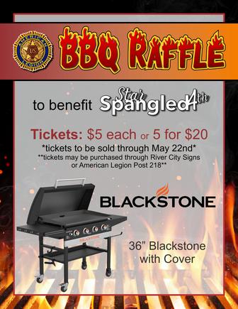 Funds raised will help finance our annual StarSpangled 4th fireworks display. This year's July 4 event will honor our nation's 250th birthday. Tickets are available at River City Signs at 719 Jefferson or at the American Legion bar.